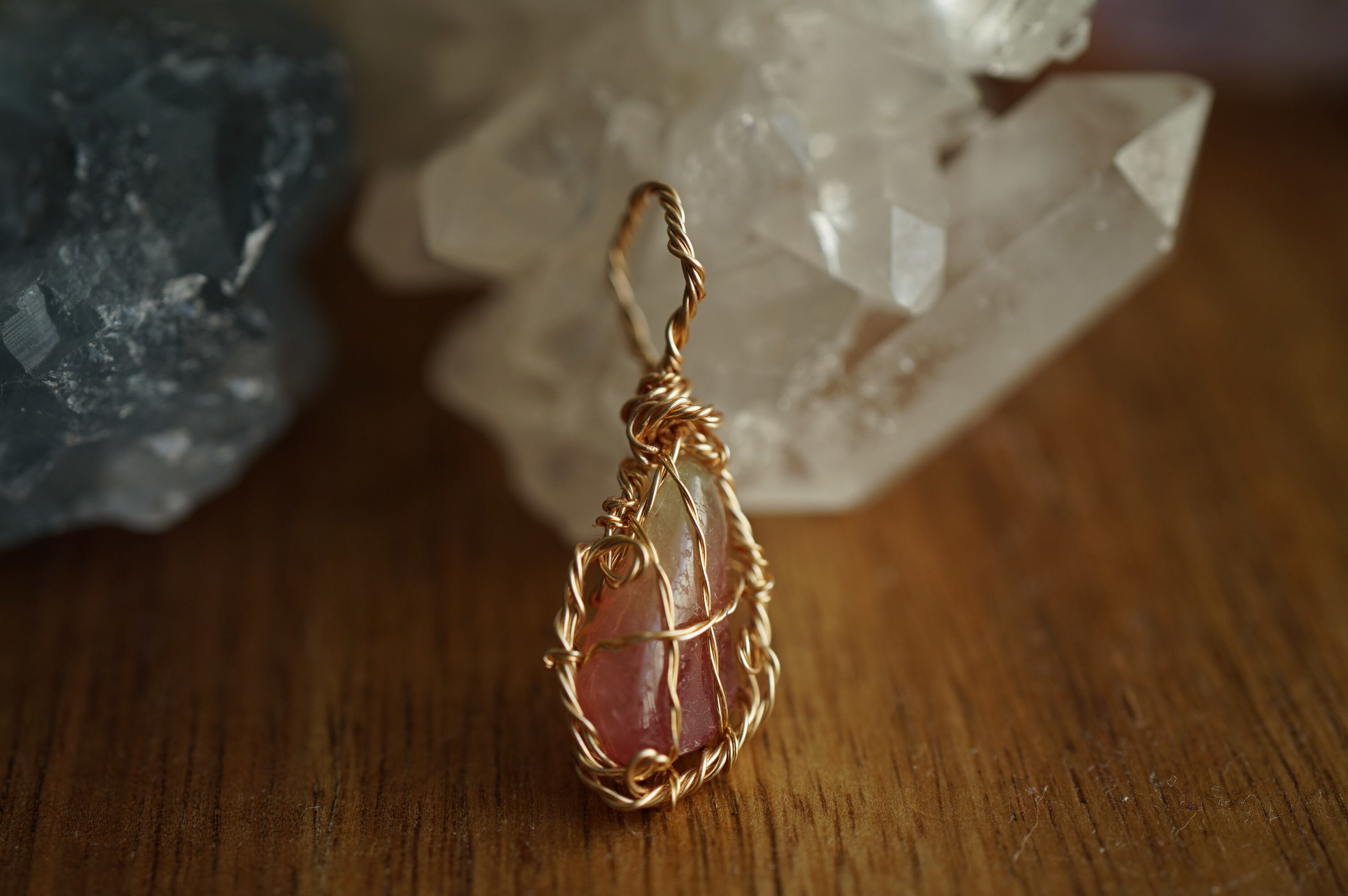 材料:ピンクトルマリン(天然石),アーティスティックワイヤー(色:金色)