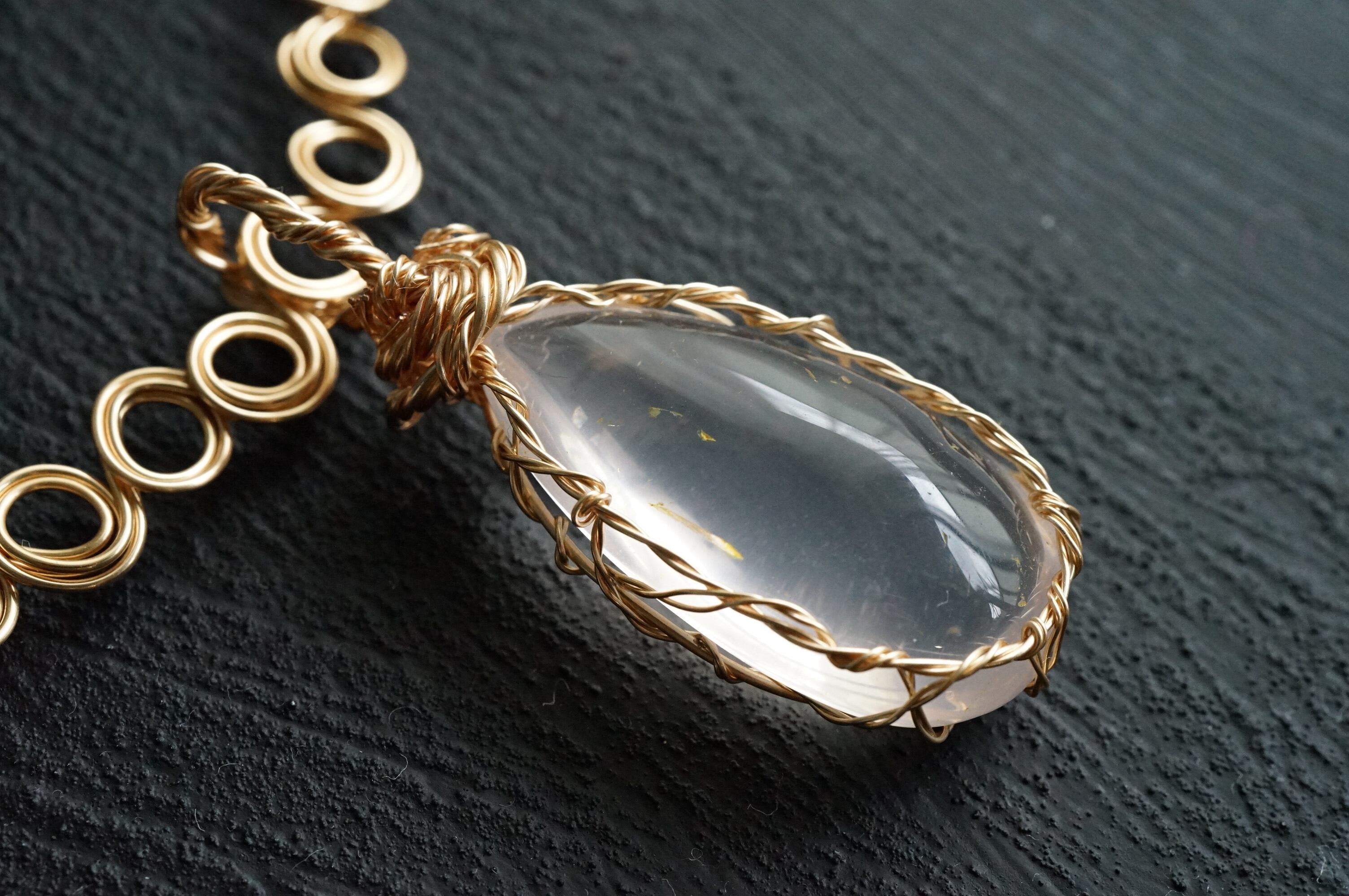 そんな雫型のジラソルを、金色のワイヤリングで包みました。