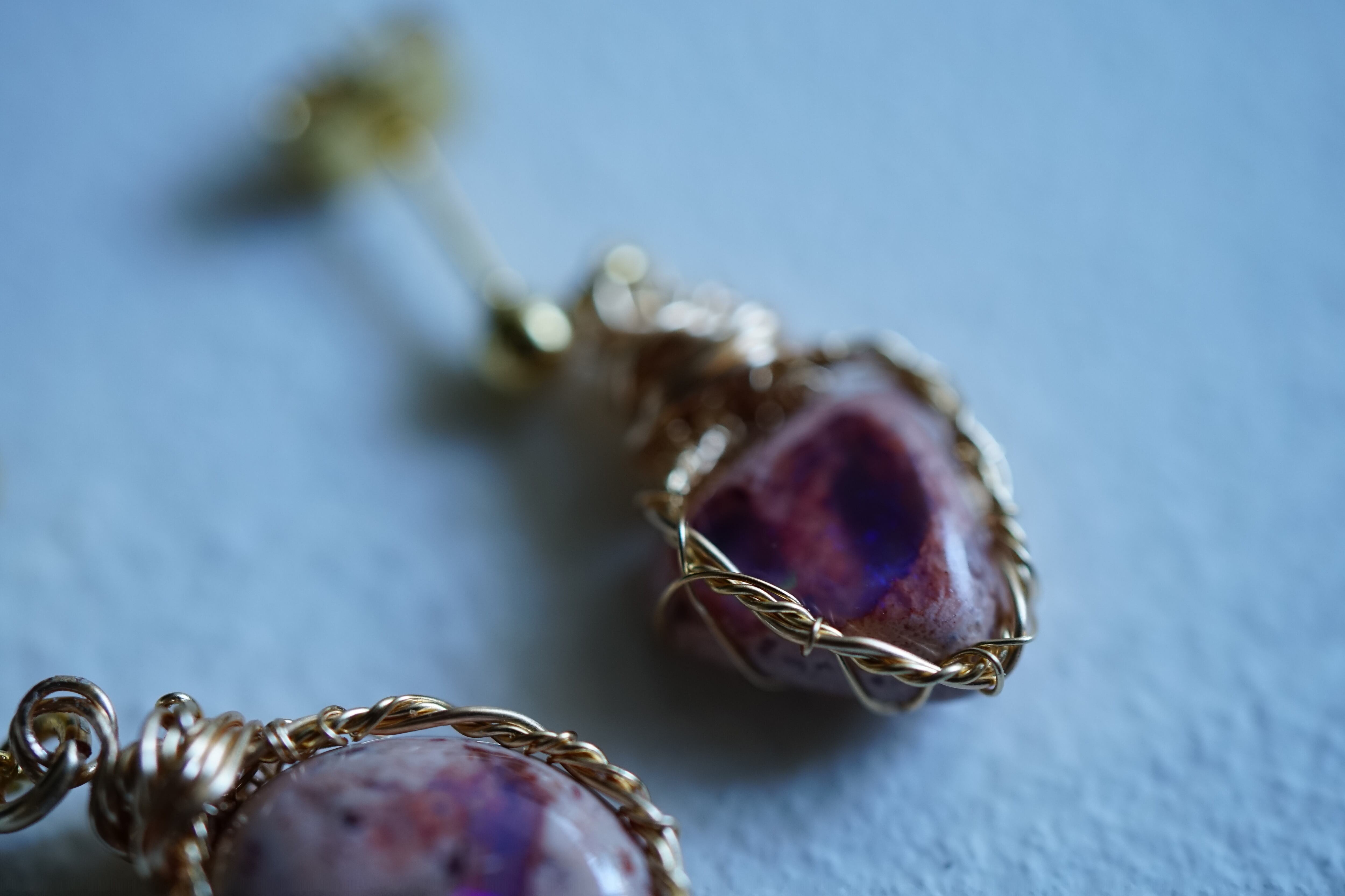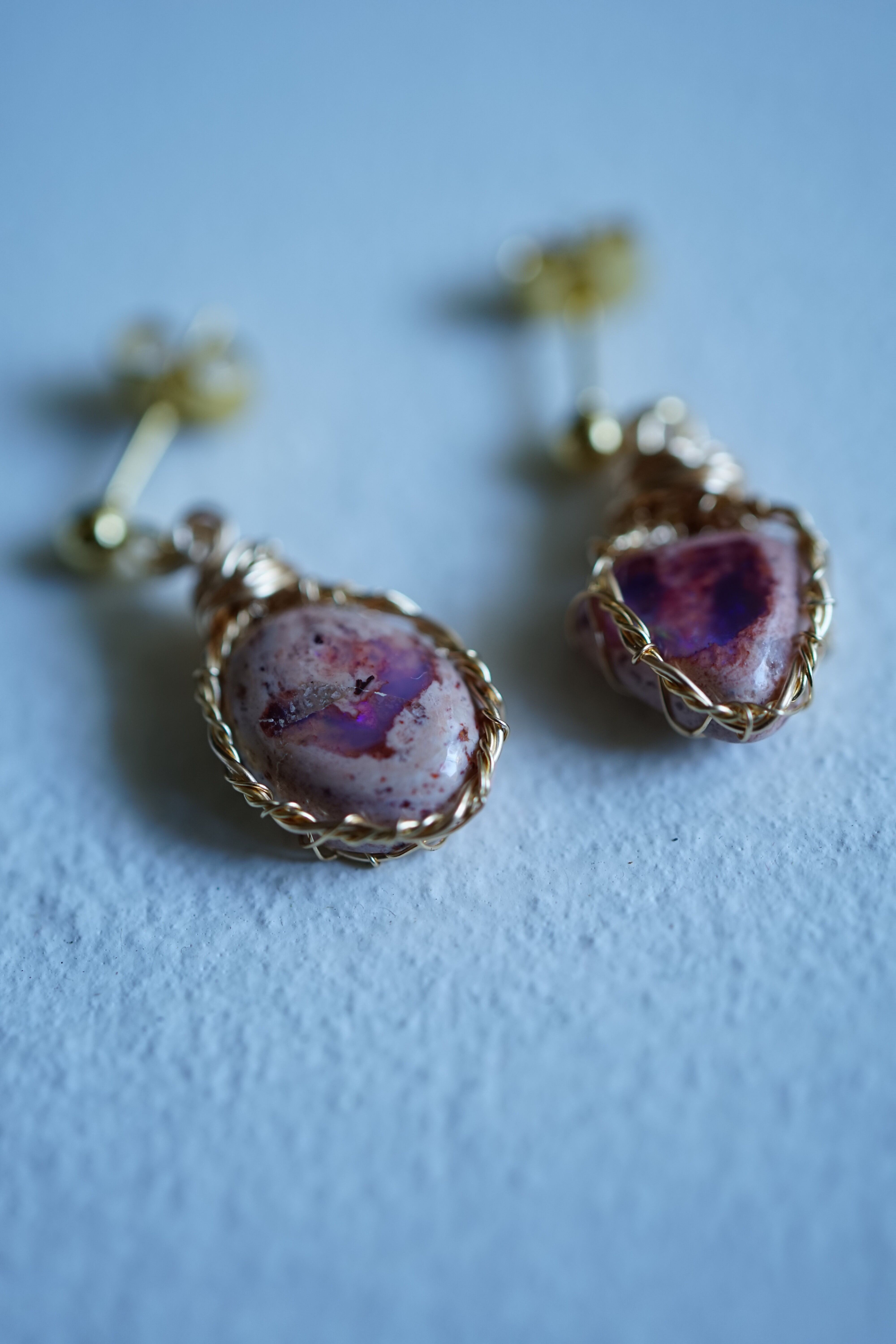 カンテラオパールを組み合わせて、唯一無二のピアス/イヤリングに仕立てました。