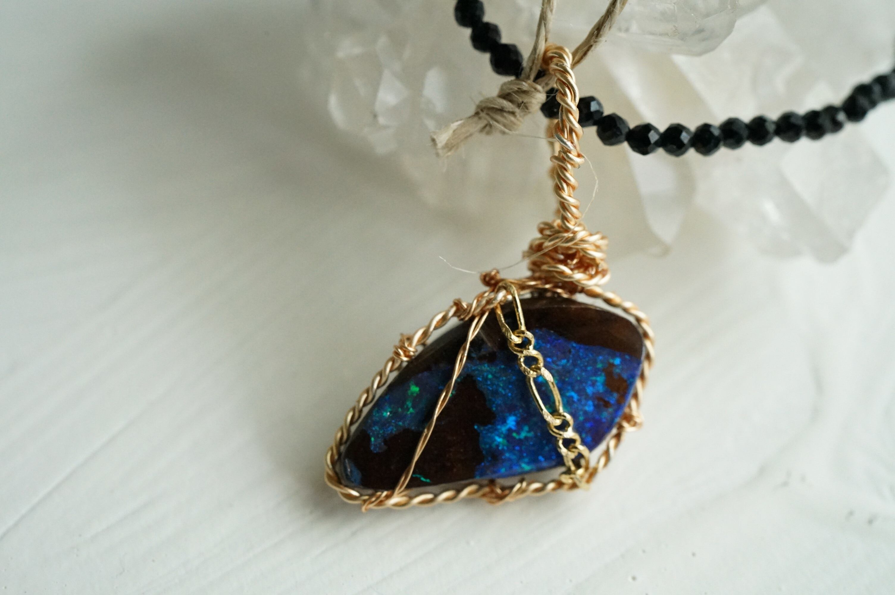 青く不思議な輝きを放つピクチャーオパールを、ペンダントトップにしました。