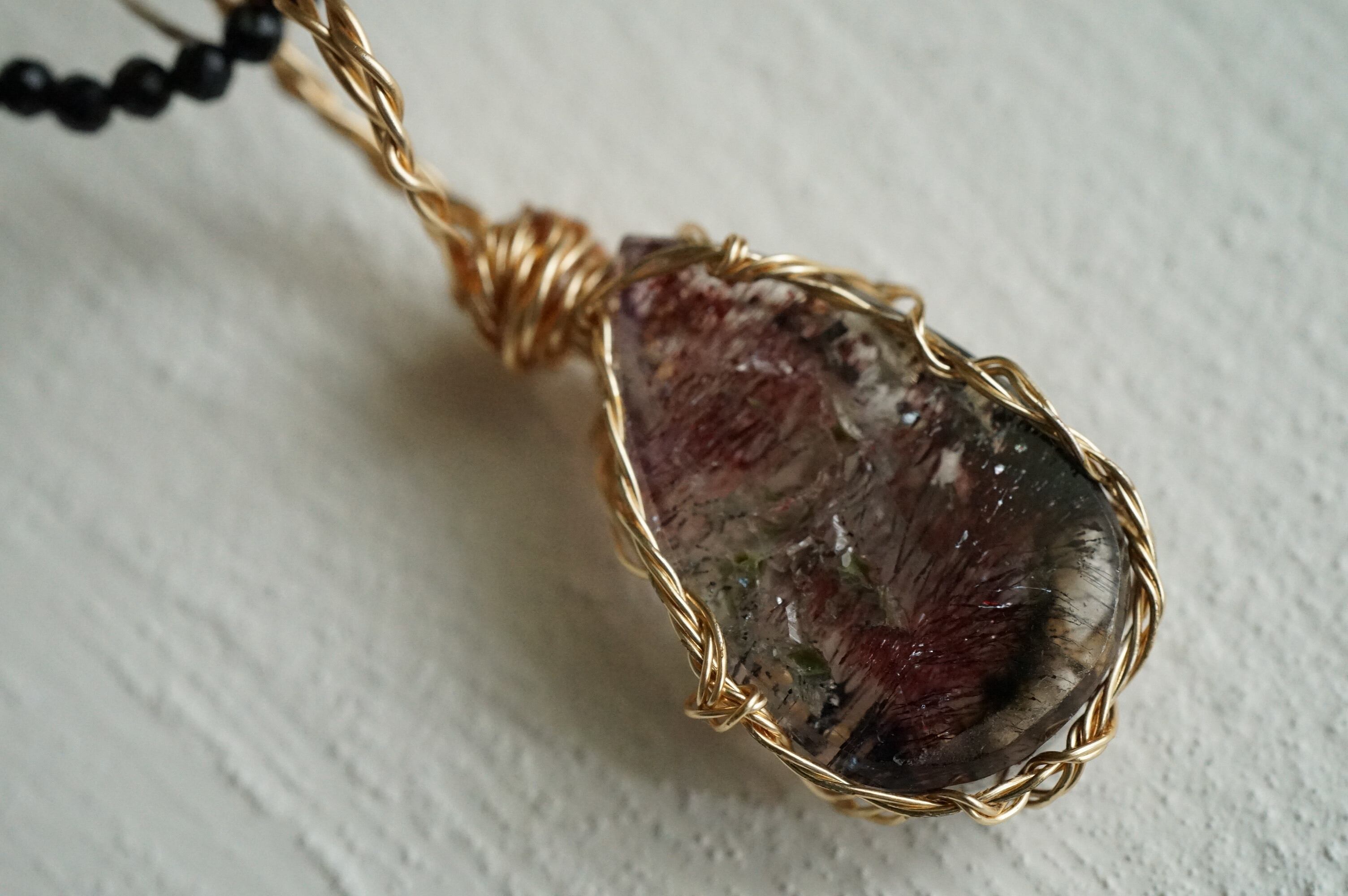 材料:エレスチャルアメシスト”スーパーセブン”(天然石),アーティスティックワイヤー(色:金色)