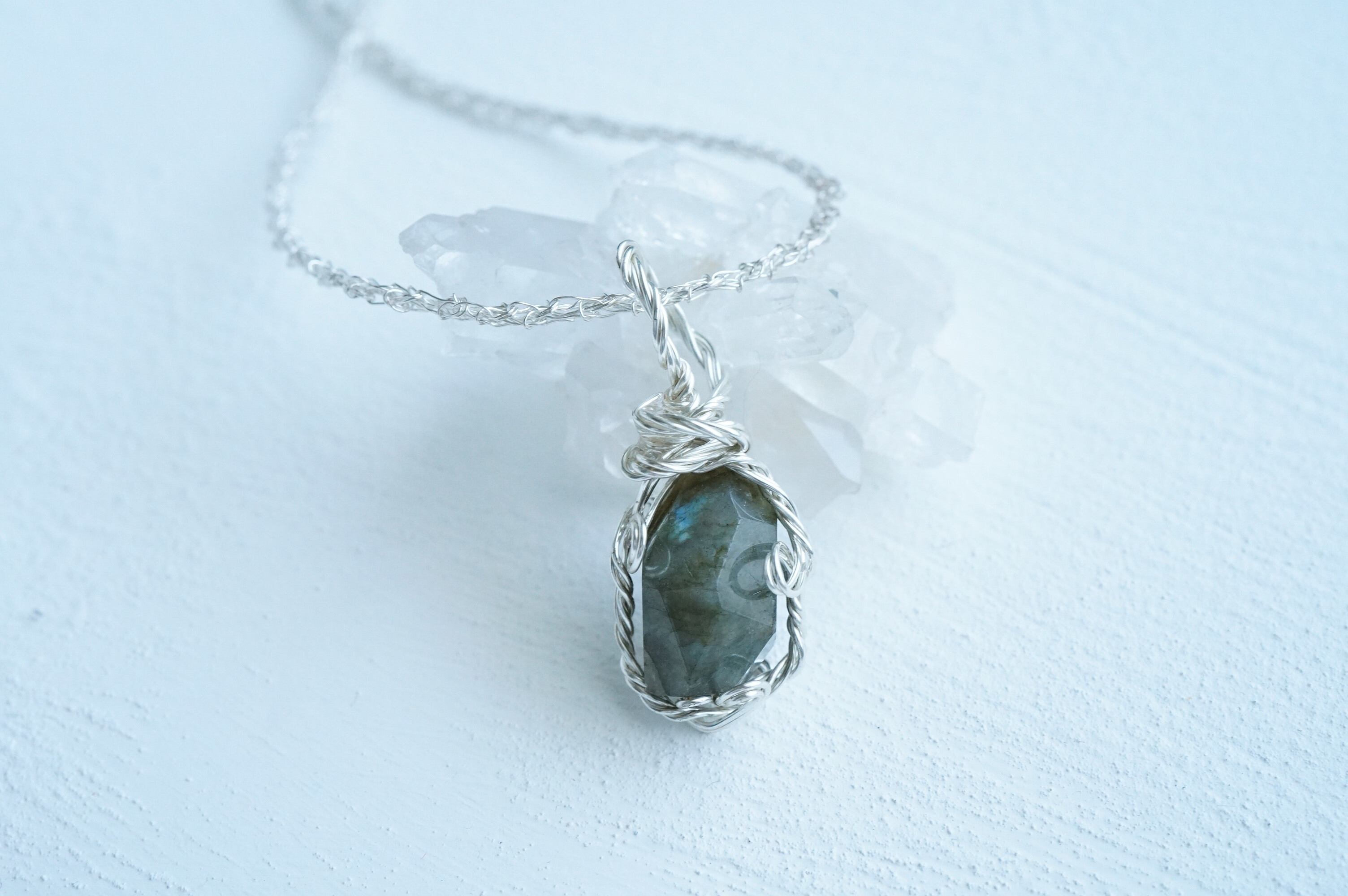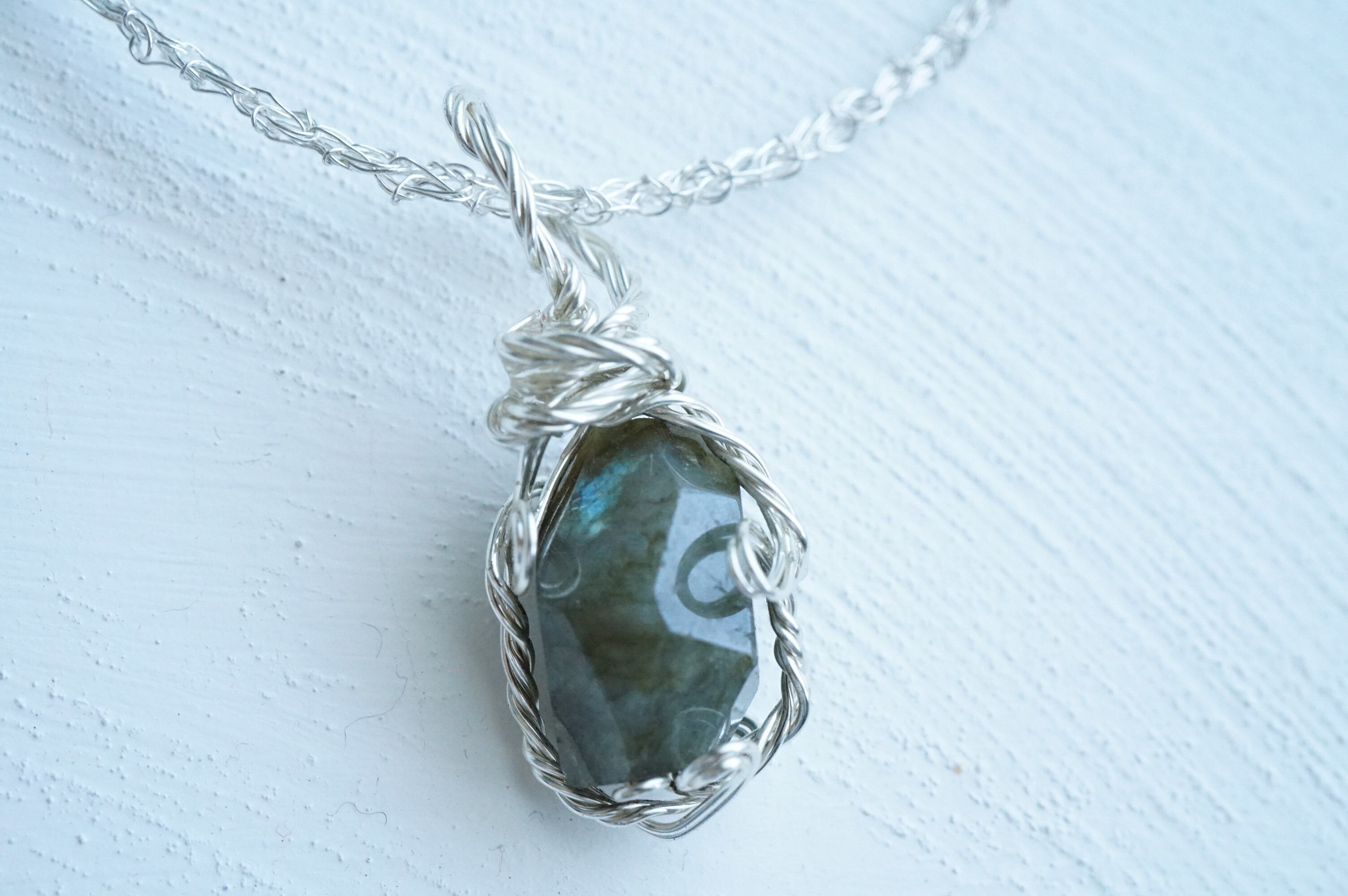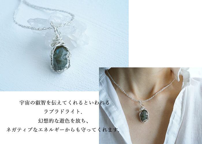 材料:ラブラドライト(天然石),アーティスティックワイヤー(色:銀色)