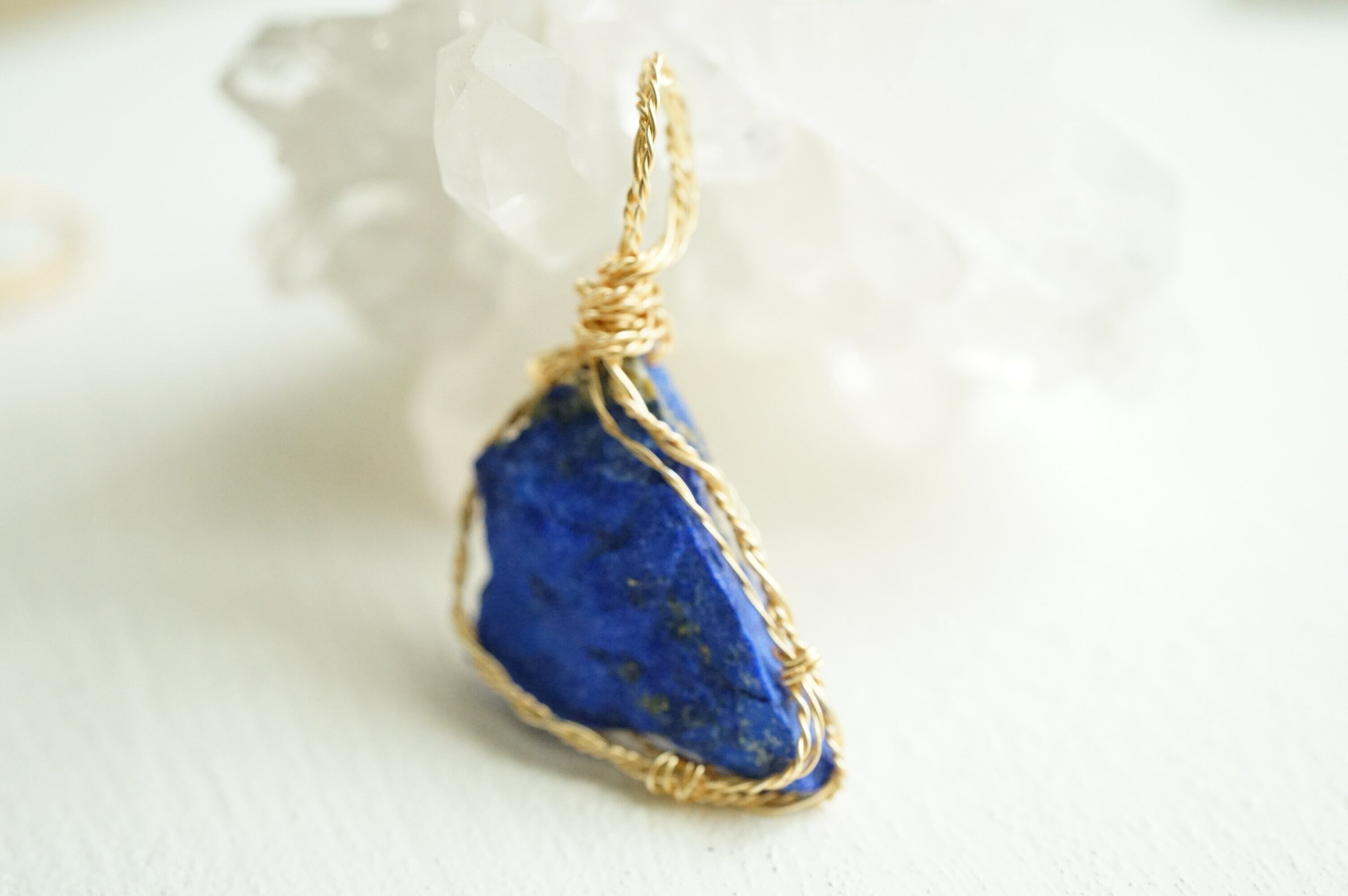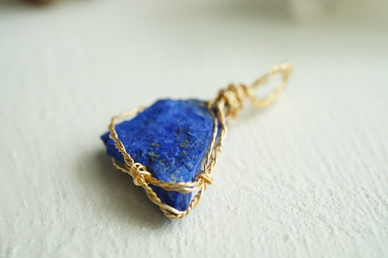 ラピスラズリの原石を、アーティスティックワイヤーでペンダントトップにしました。