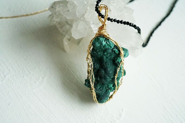材料:マラカイト(天然石),アーティスティックワイヤー(色:金色)