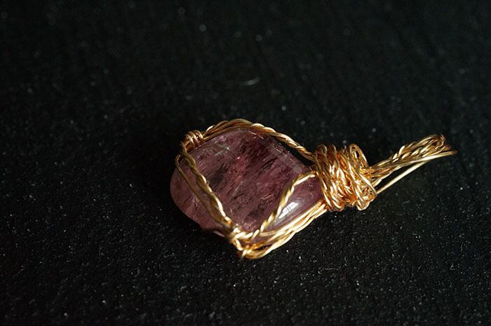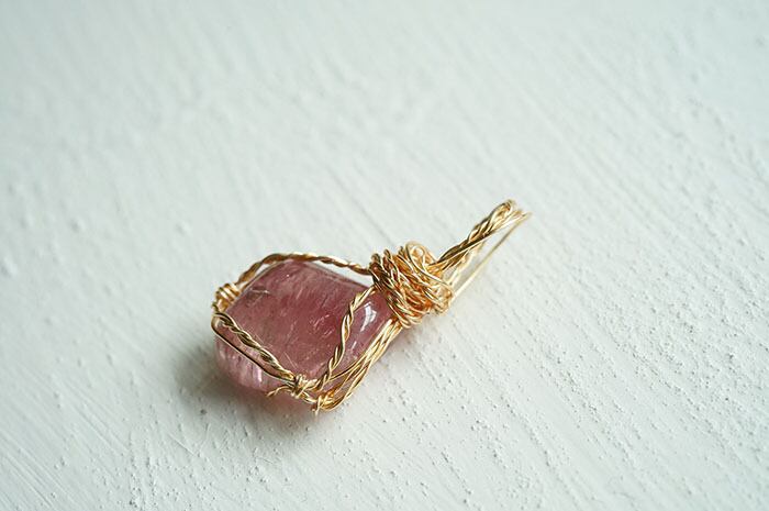 材料:ピンクトルマリン(天然石),アーティスティックワイヤー(色:金色)