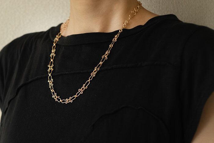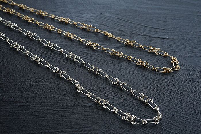 アーティスティックワイヤーをつかったモチーフをつなげて、軽やかで繊細なチェーンに仕上げました。