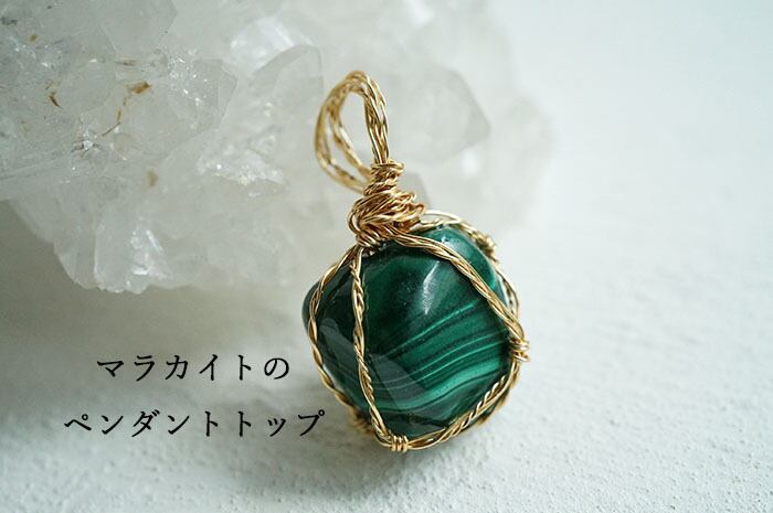 材料:マラカイト(天然石),アーティスティックワイヤー(色:金色)