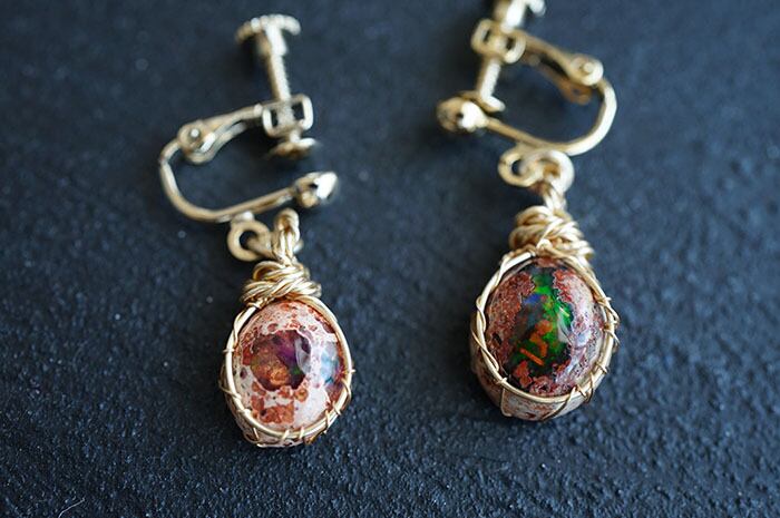材料:カンテラオパール(天然石),アーティスティックワイヤー(色:金色)