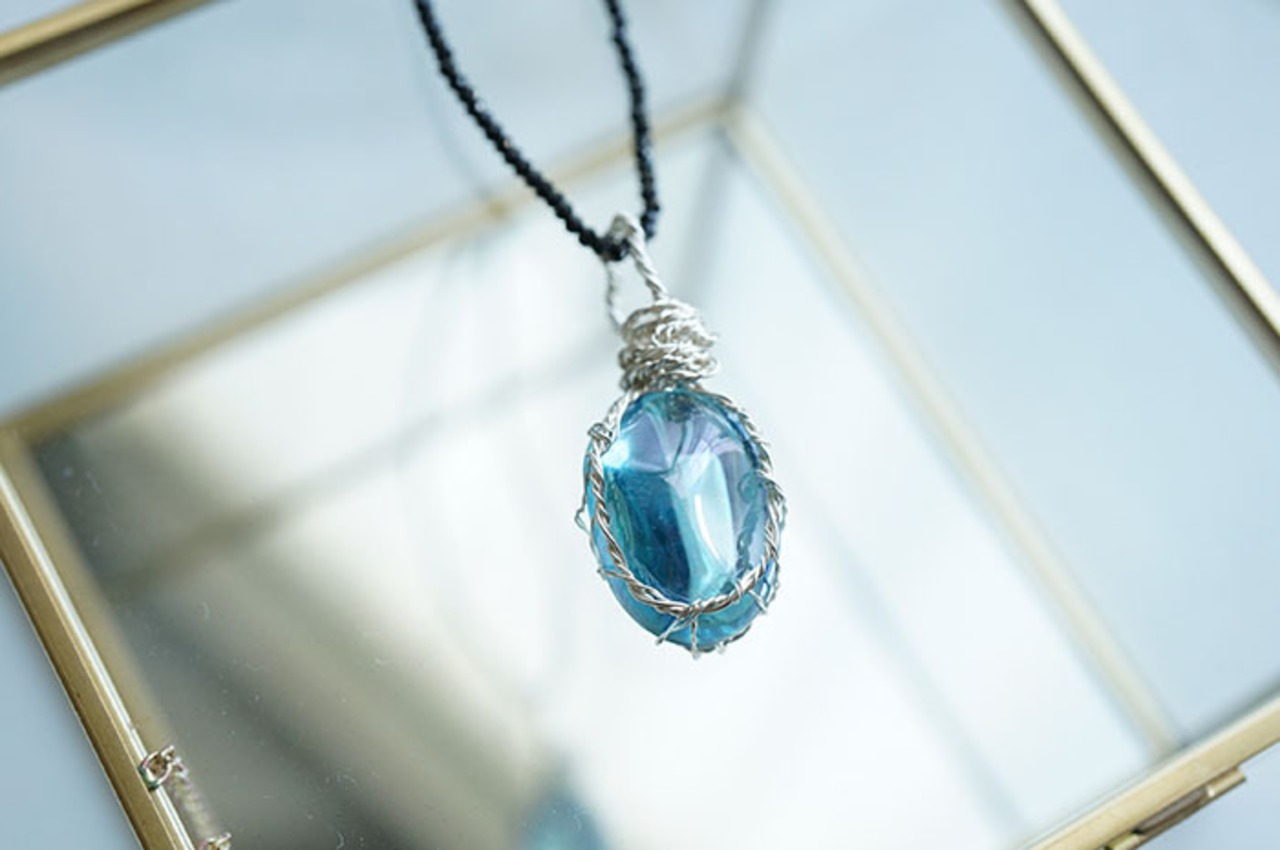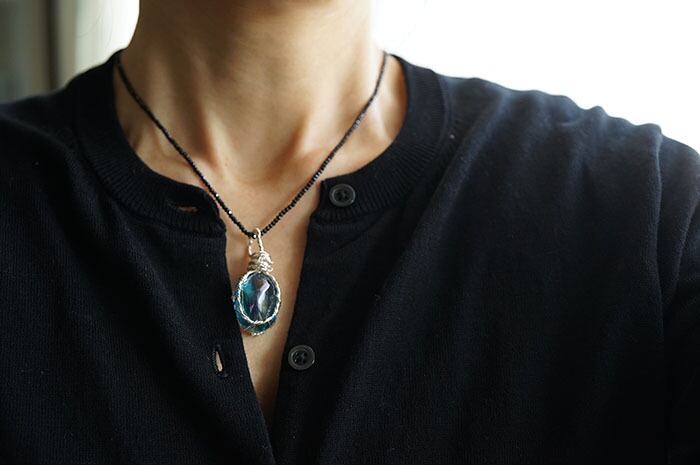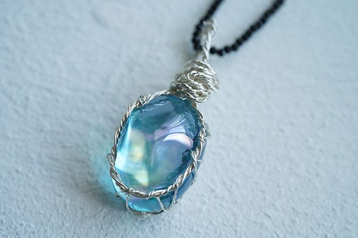 材料:アクアオーラ(天然石),アーティスティックワイヤー(色:銀色)