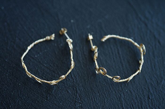 ワイヤーアートを、大きめのフープ型ピアス/イヤリングに仕立てました。