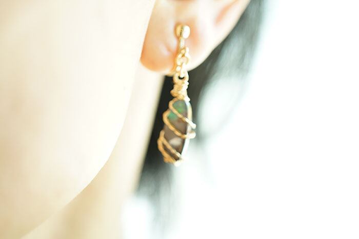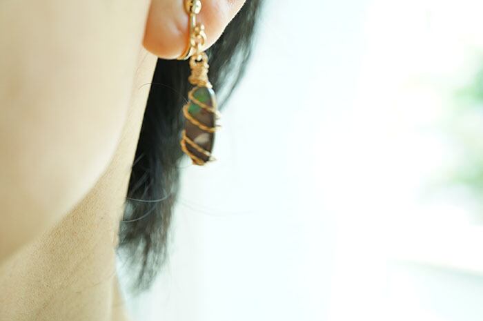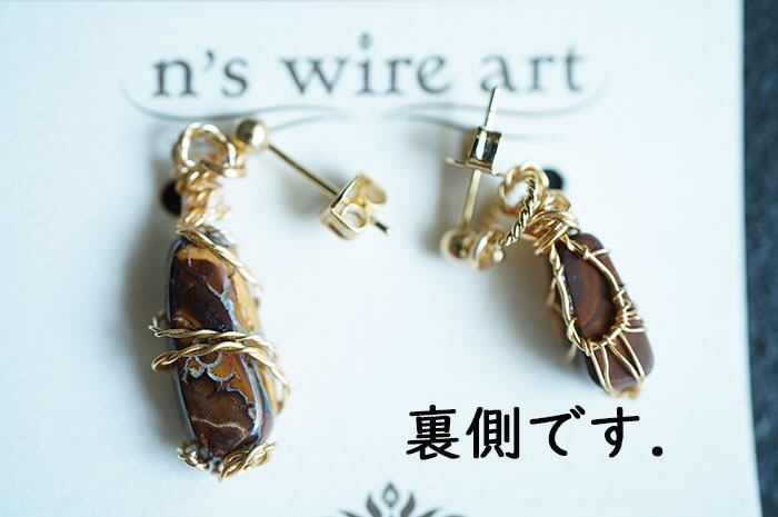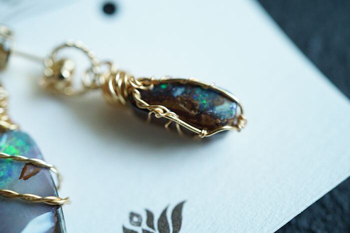 材料:ボルダーオパール(天然石),アーティスティックワイヤー(色:金色)